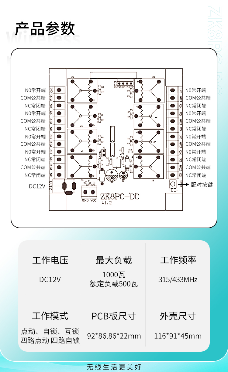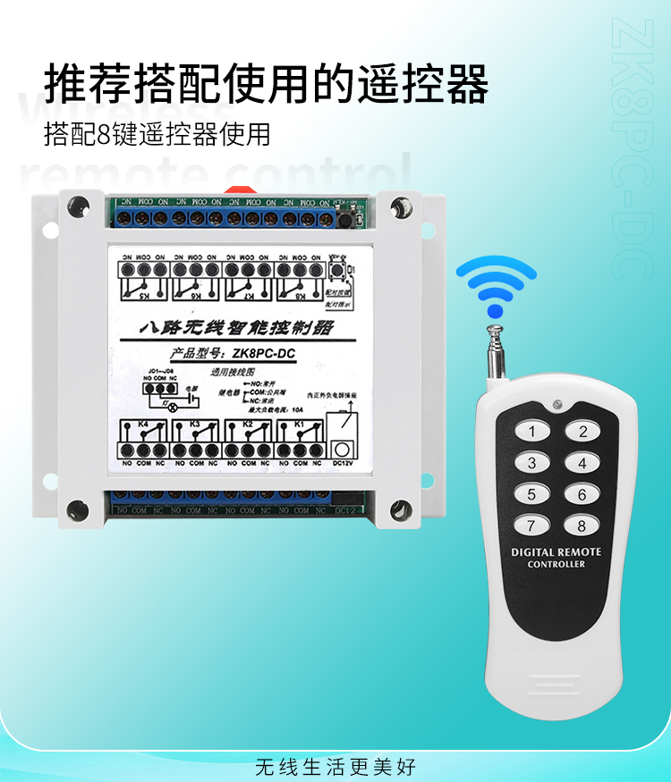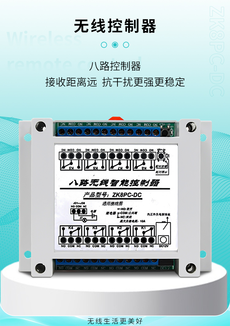 一、這是一款具有8路繼電器幹接點輸出的丝瓜视频下载污遙控智能控製器,它采用標準DC12V電源插座輸入, |