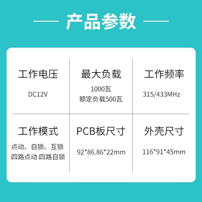 四、本控製器采用超外差接收模塊,接收靈敏度更高,接收距離更遠,抗幹擾更強更穩定。 |