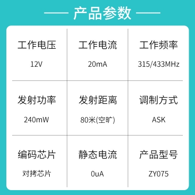 遙控開關、遙控器車庫門、防盜報警、遙控門鎖、遙控電動卷簾門窗、水泵遙控、工業控製產品等;