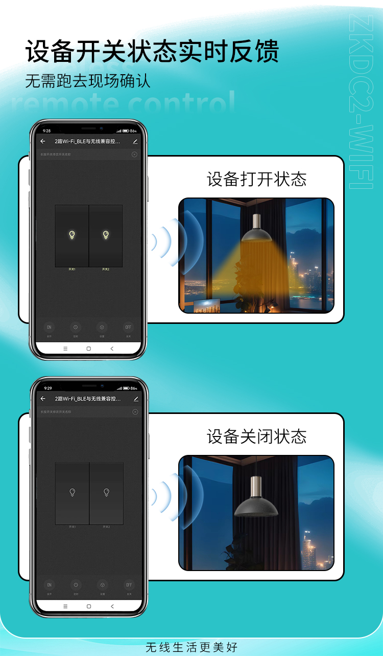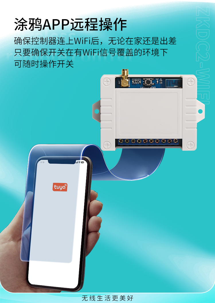 ZKDC2-WIFI是一款智能遙控開關,可通過塗鴉APP手機遠程控製開關