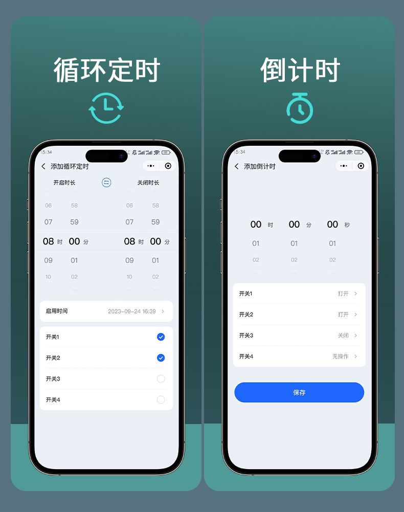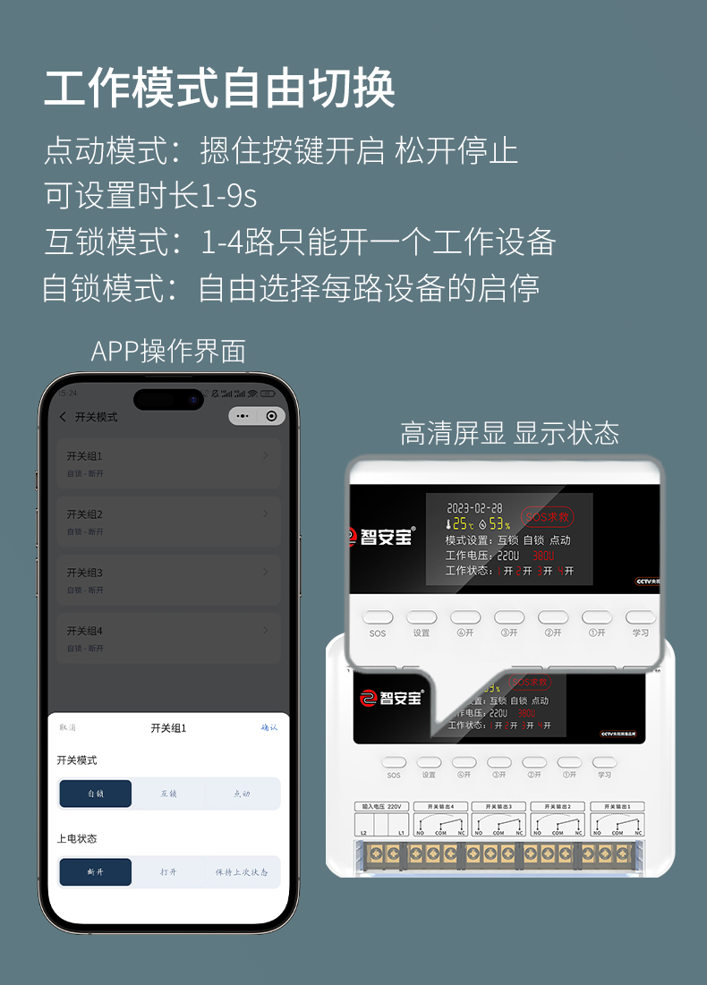 ZK-A10Q是一款四路智能遙控開關,手機小程序遠程遙控不限距離,有四大定時模式,場景設置,電腦端可視化大屏顯示。