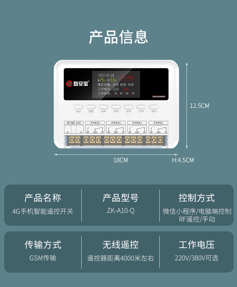 首頁 > 產品 > 物聯網APP智能控製器係列 > 4G物聯網智能開關 > ZK-A10Q 4G智能遙控開關