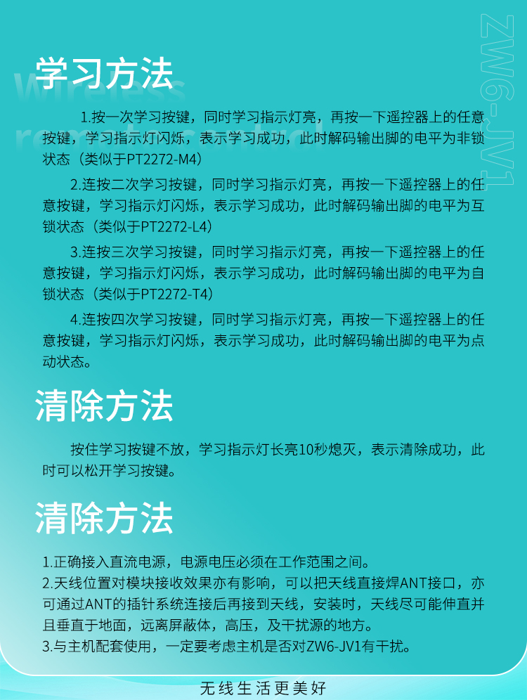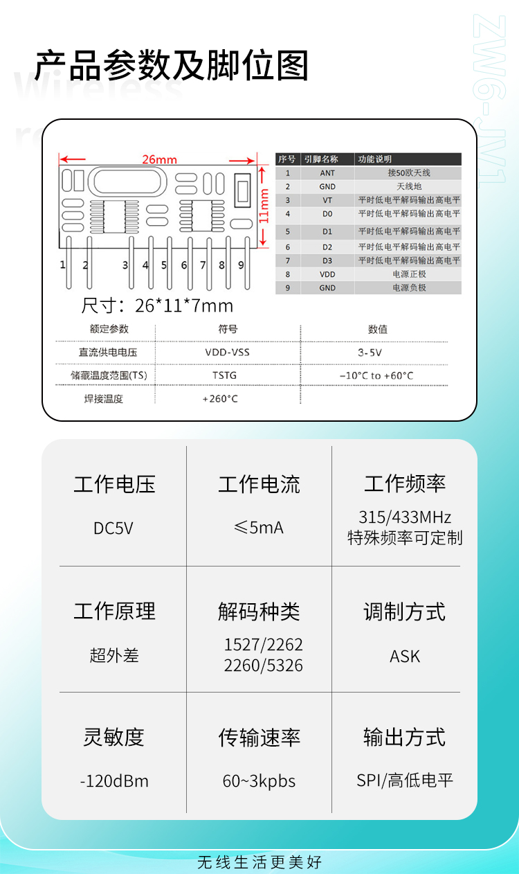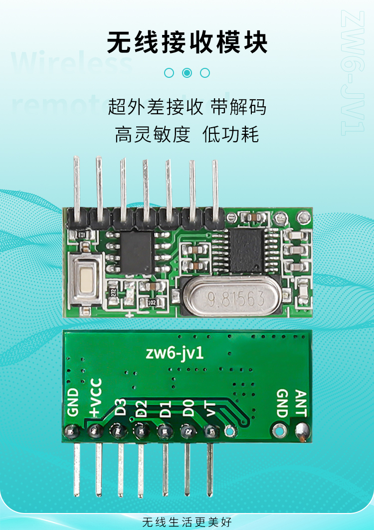 ZW6-JV1是一款超外差、帶解碼的接收模塊,它具有高靈敏、低功耗、高性價比的優勢。