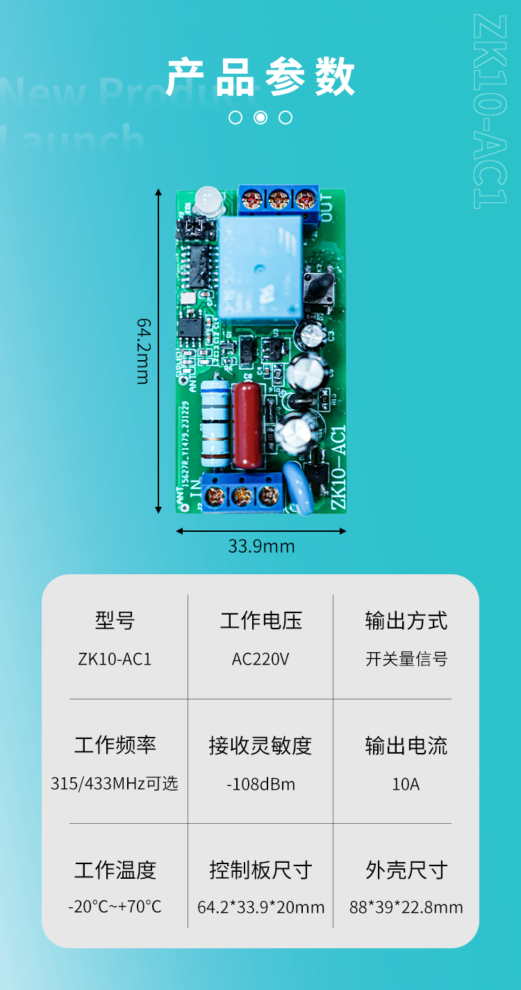 ZK10-AC1是一款220V單路控製器,開關量信號輸出,負載功率大