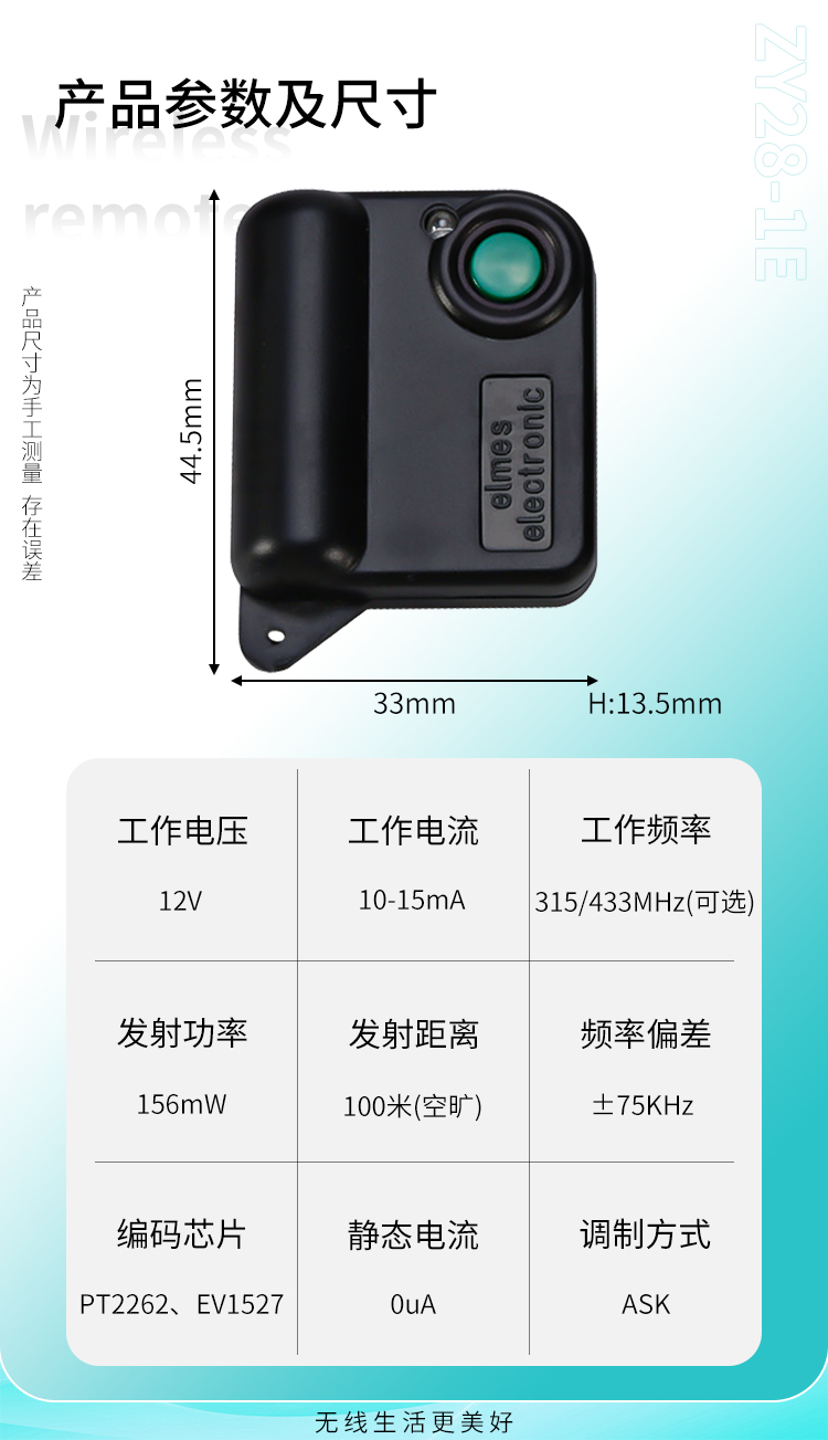 ZY28-1E是一款單鍵小功率遙控器,小巧外殼