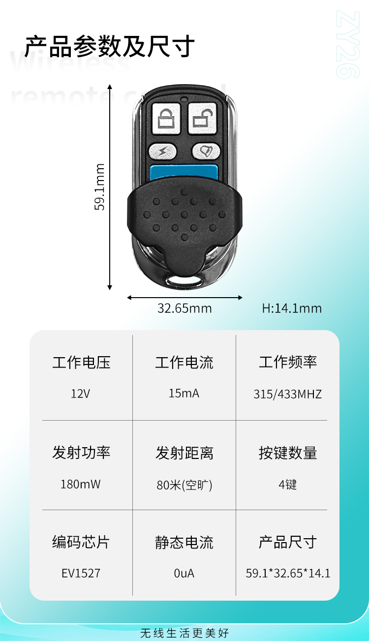 ZY26-4是一款小功率丝瓜视频下载污遙控器,滑蓋設計,外觀精美