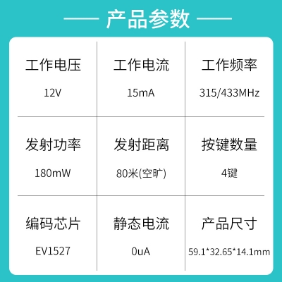 遙控開關、遙控車庫門、防盜報警、遙控門鎖、遙控電動卷簾門窗、水泵遙控、工業控製產品等;