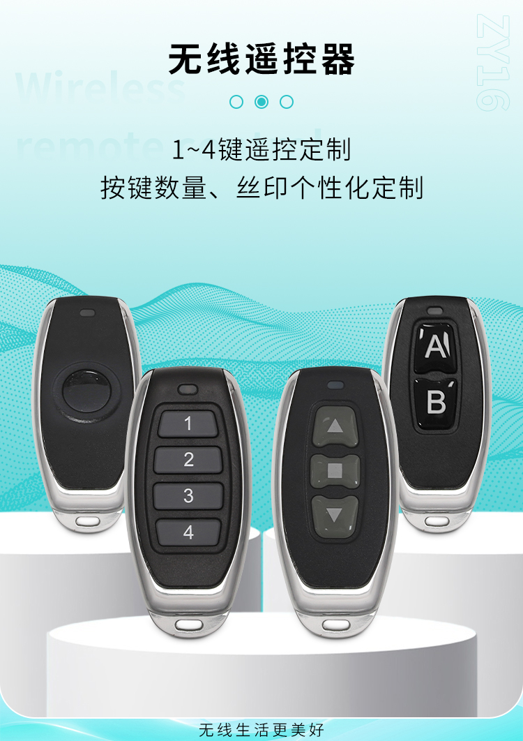 ZY16-E是一款小功率丝瓜视频下载污遙控器,1-4鍵可選,金屬邊框質感。