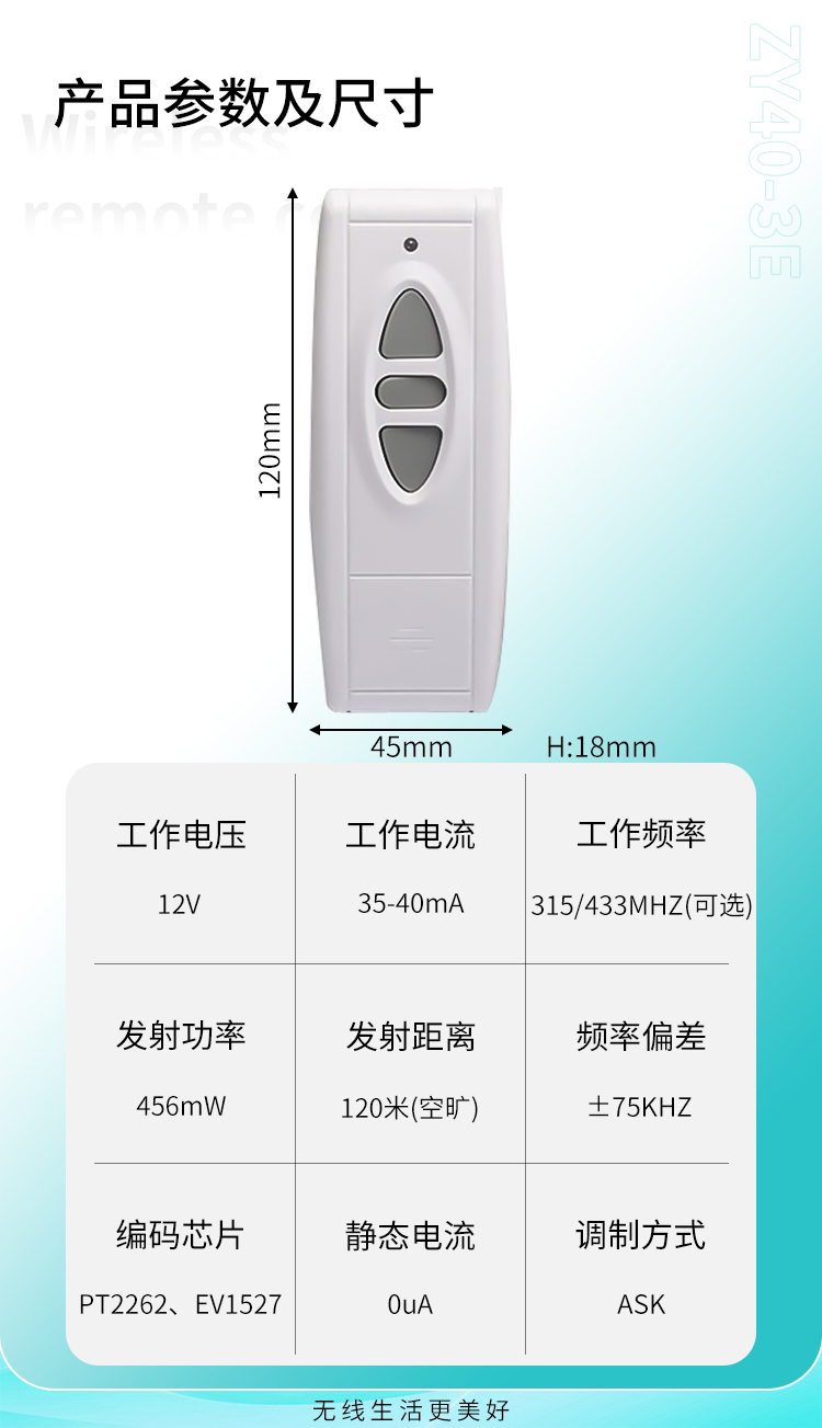 ZY40-3E是一款3鍵小功率遙控器,帶底座