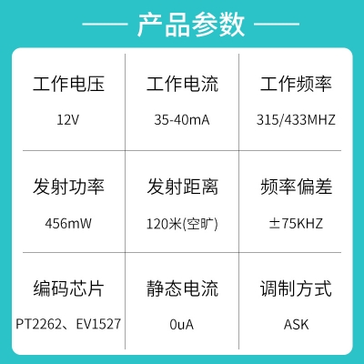 遙控開關、防盜報警、遙控門鎖、遙控電動卷簾門窗、水泵遙控、工業控製產品等;