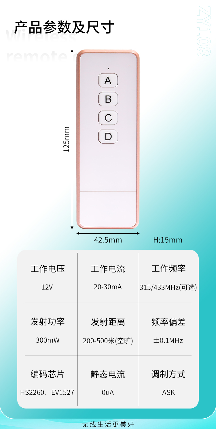 ZY108是一款小功率丝瓜视频下载污遙控器,外觀精美