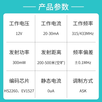 遙控開關、防盜報警、遙控門鎖、遙控電動卷簾門窗、水泵遙控、工業控製產品等;