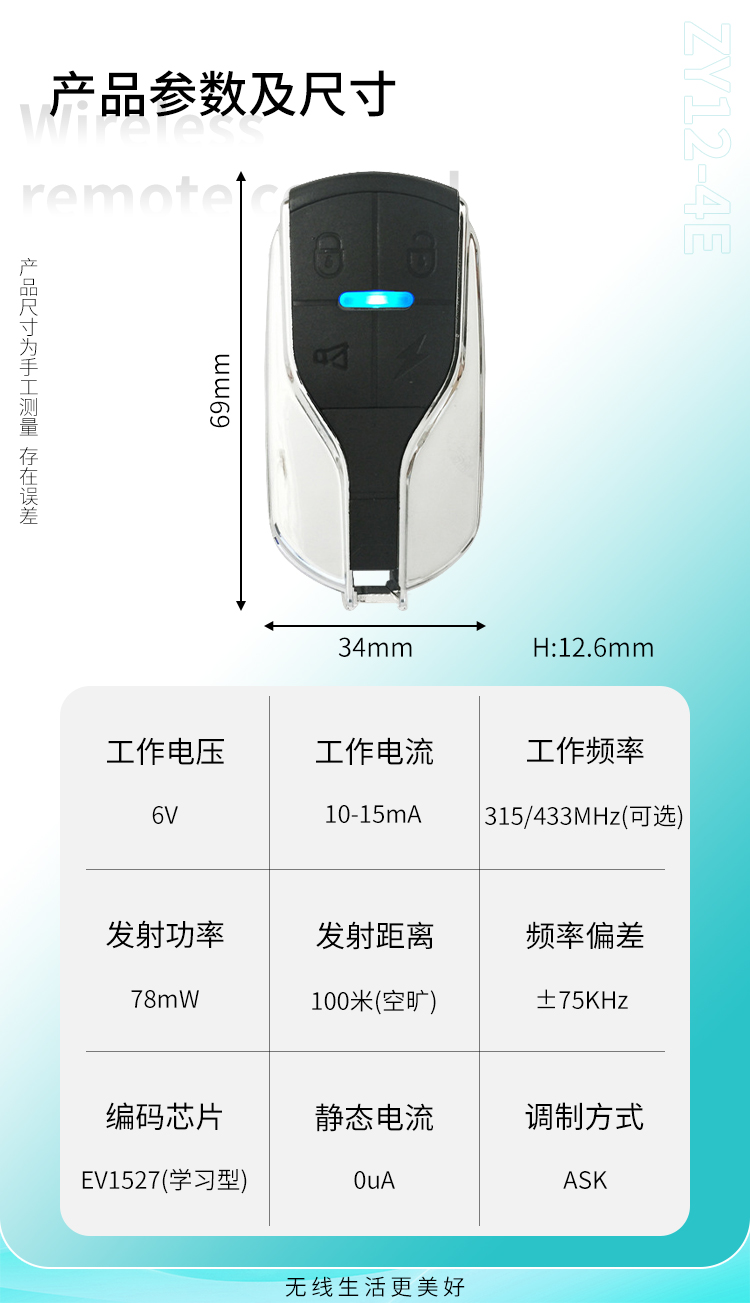 ZY12-4E是一款小功率丝瓜视频下载污遙控器,具有可靠性高、頻率穩定、穿透能力強等特點;