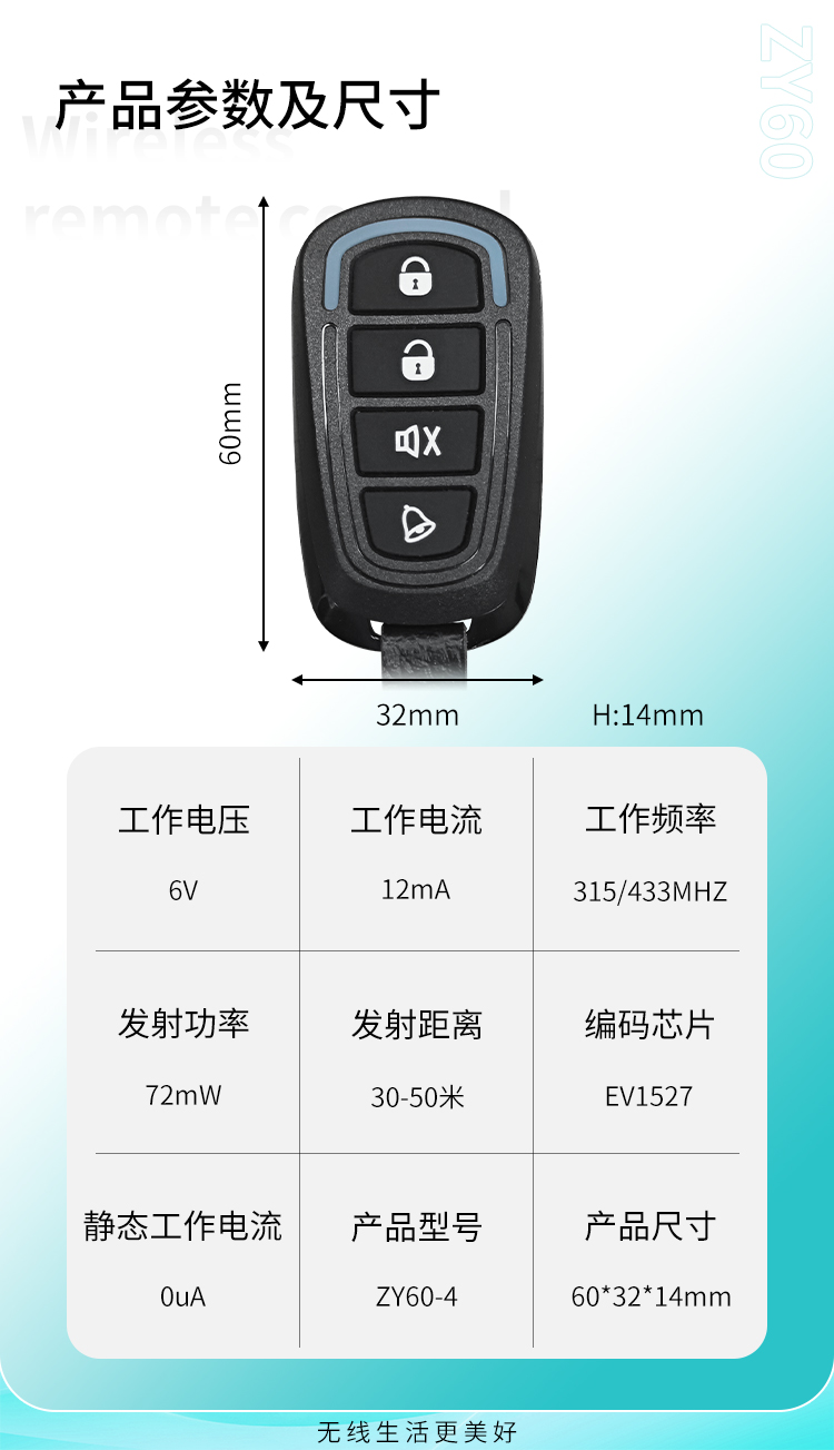 ZY60是一款小功率丝瓜视频下载污遙控器,具有可靠性高、頻率穩定、穿透能力強等特點;