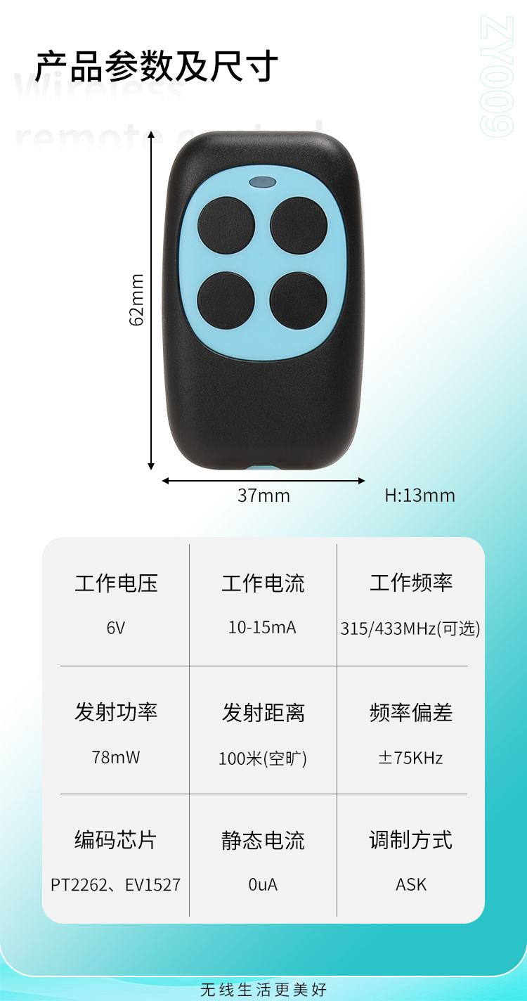 ZY009  是一款小功率丝瓜视频下载污遙控器,多種顏色可選, 外觀精美