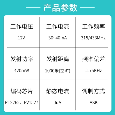 遙控開關、防盜報警、遙控門鎖、遙控電動卷簾門窗、水泵遙控、工業控製產品等;